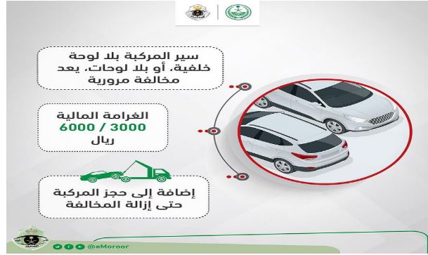 الغرامات لهذه الحالات تبدأ من 500 ريال وتصل إلى 900 ريال سعودي، وقد تصل العقوبة إلى سحب المركبة مؤقتا.