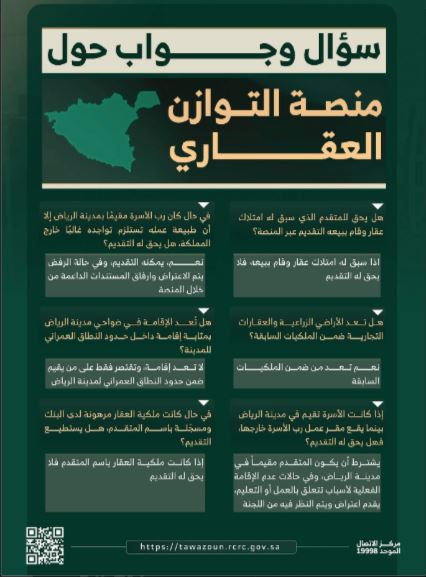 في إطار مساعيها المستمرة لتحسين تجربة المتقدمين عبر منصة التوازن العقاري، حرصت الهيئة الملكية لمدينة الرياض على تحديد أبرز الاستفسارات التي تتكرر بشكل كبير بين المتقدمين، وتقديم إجابات دقيقة وواضحة لها من خلال القنوات الرقمية الرسمية للهيئة.